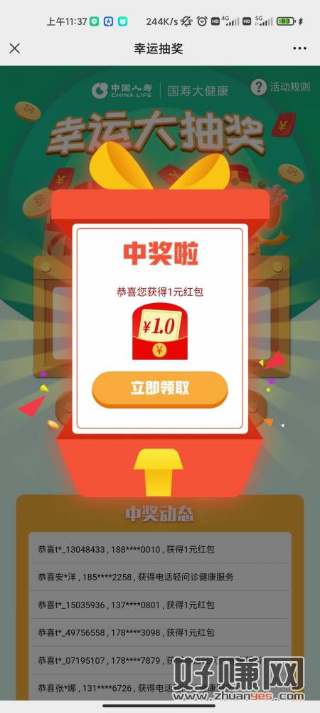 建.行 好运连连抽 有水哈