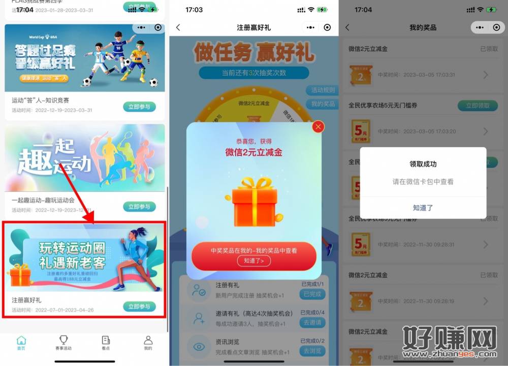 【民生银行运动圈抽2~8元立减金】微信进入小程序“民生银行运动圈”->下拉简单浏览得次数->抽2~8元微信立减金