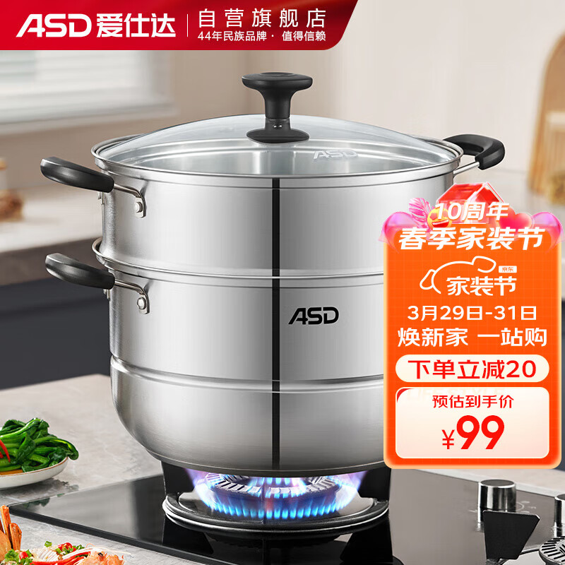 爱仕达 家用复底电磁炉通用不锈钢蒸锅二层 28CM
