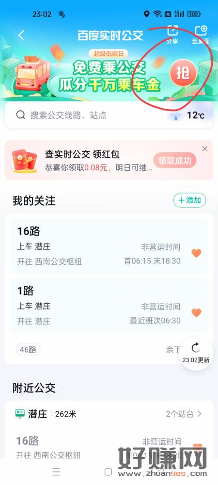 百度地图实时公交进去,每日做任务至少2次机会,破零
