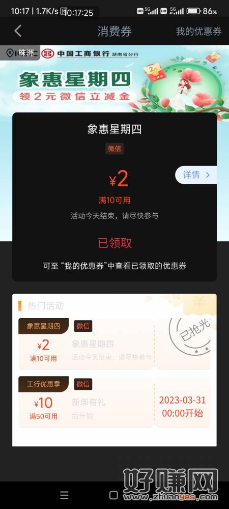湖南工行消费季刚刚没抢到的去领补了