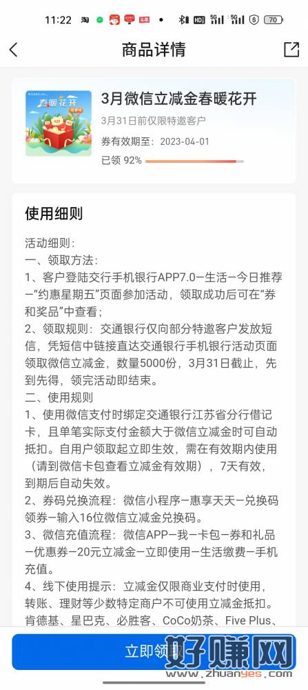 【交通银行】登录赠立减金20元!3月31日前点击按钮免费领取,限量5000份!退订回YXTD。 5gyx.cn/VId3DR