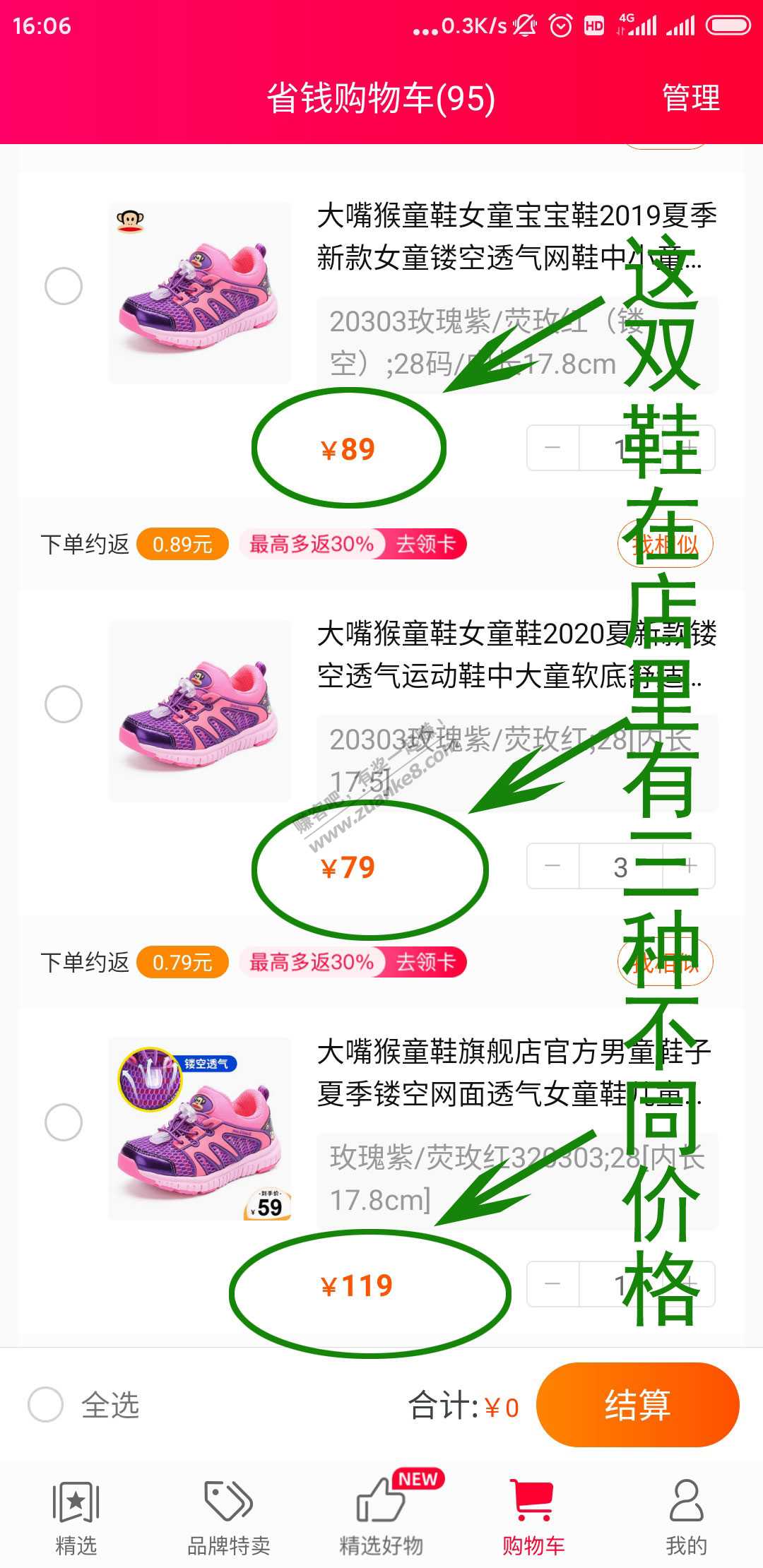大概划到25.8元,有人说黑号,我买了这么多,也没黑。这家店久不久就变一下,同一双鞋子在店里有多种不同价格,参加多种不同的活动。我女儿的脚长得很快,一双鞋子最多两季,就穿不下了,买贵的很浪费,这家的鞋子质量很好,颜值很高,牌子也好,比汤姆猫更好一些(汤姆猫也是我发的,也买了2双)。我每次都弄几双,最贵的27块,最便宜的12块,隔着2码买,女儿这两三年的鞋子都买齐了。