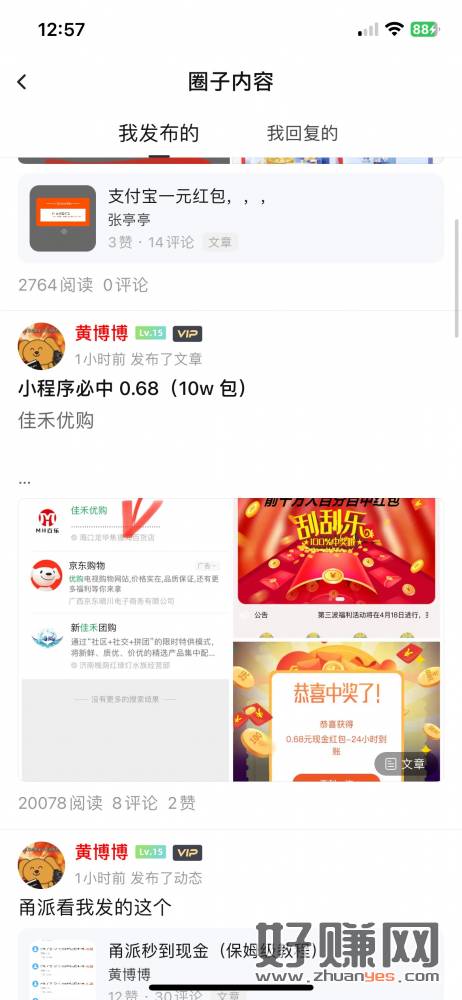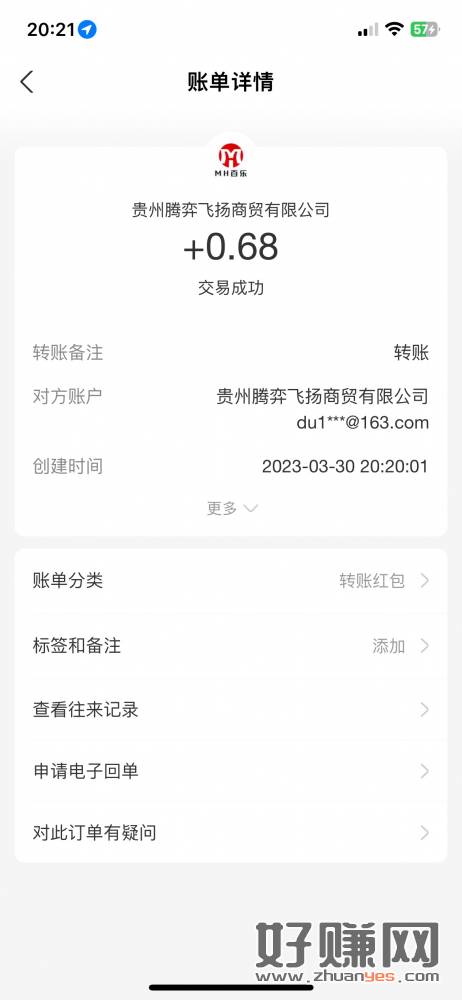 中午发的 0.68 到账了