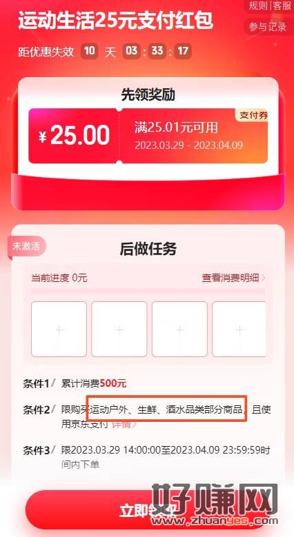 领京东支付25.01-25支付券,活动期间内在京东运动、生鲜、酒水买满500券白给。反正先领着,用不用的都不亏。