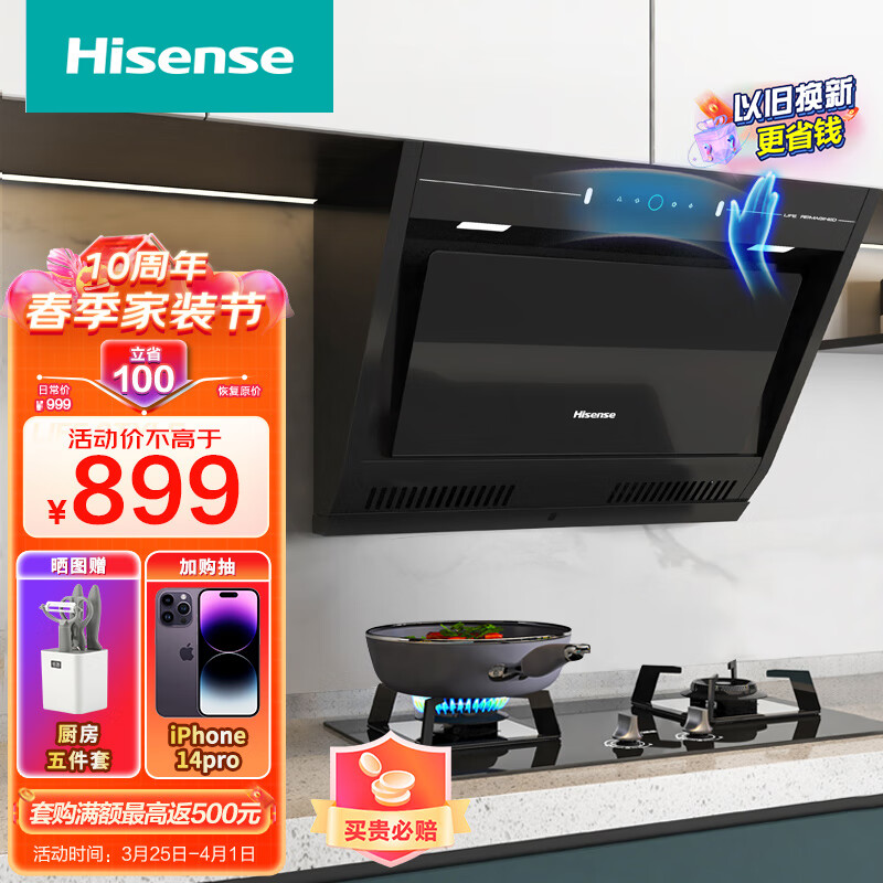 P家居特权卡领499-40京贴券,海信(Hisense)挥手智控油烟机18立方大吸力