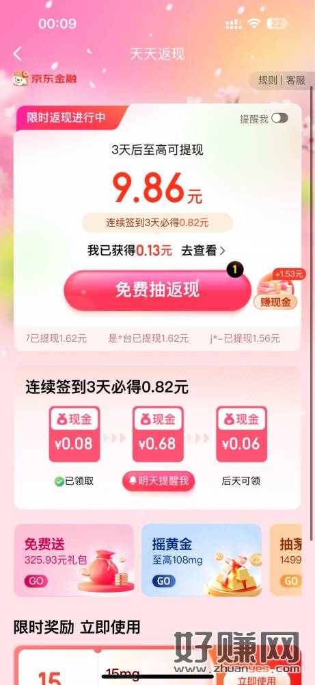 京东金融app搜天天返现试试,小毛
