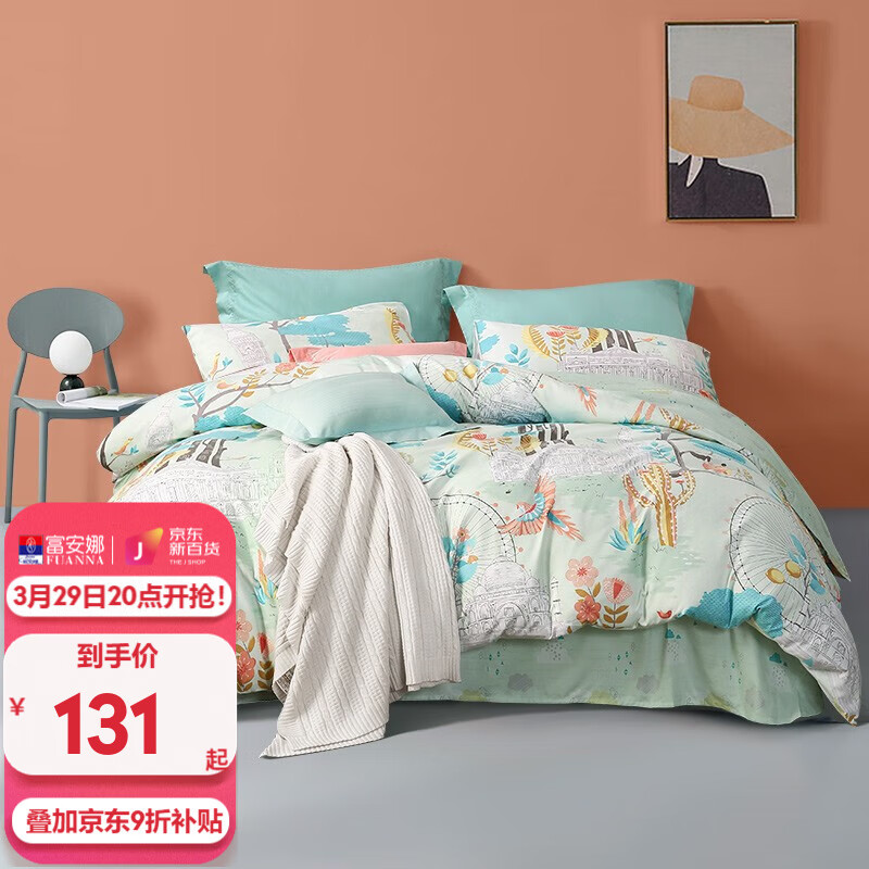 先领9折券,富安娜(FUANNA)法兰绒毛毯180*200cm/夏季三件套