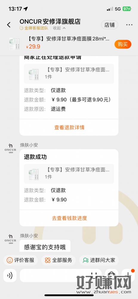 昨天 9.9 的面膜已退款