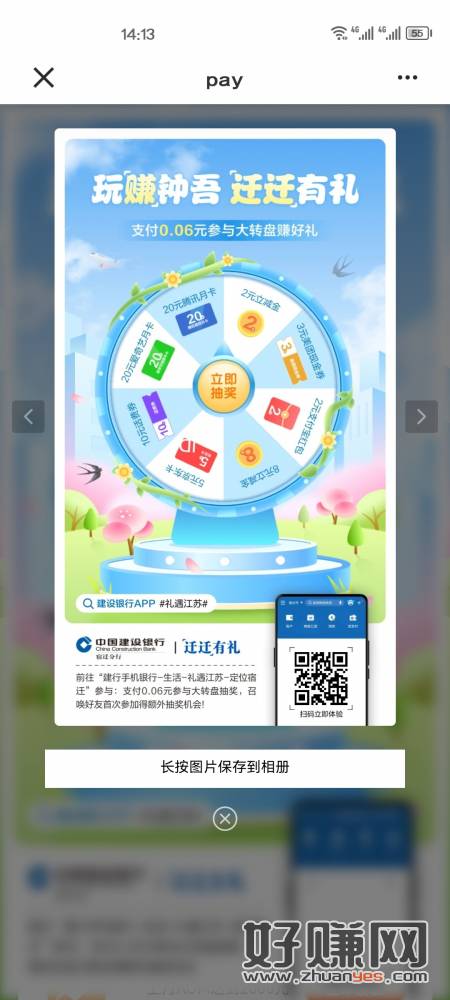 江苏宿迁建行手机银行用户每月6分钱抽奖。6月底结束。