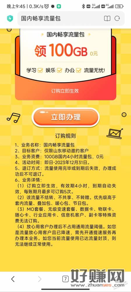 山东4小时100G流量免费
