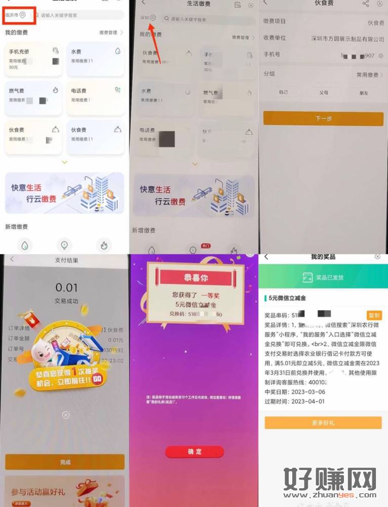④首页【缴费】,右上角更改地区(缴费所在的市区),搜索相对应的模板进行缴费,成功后会有抽奖弹窗。