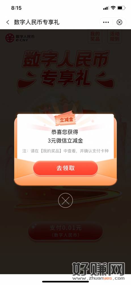 1、数字人民币专享礼:生活-城市服务-数字币支付0.01抽立减