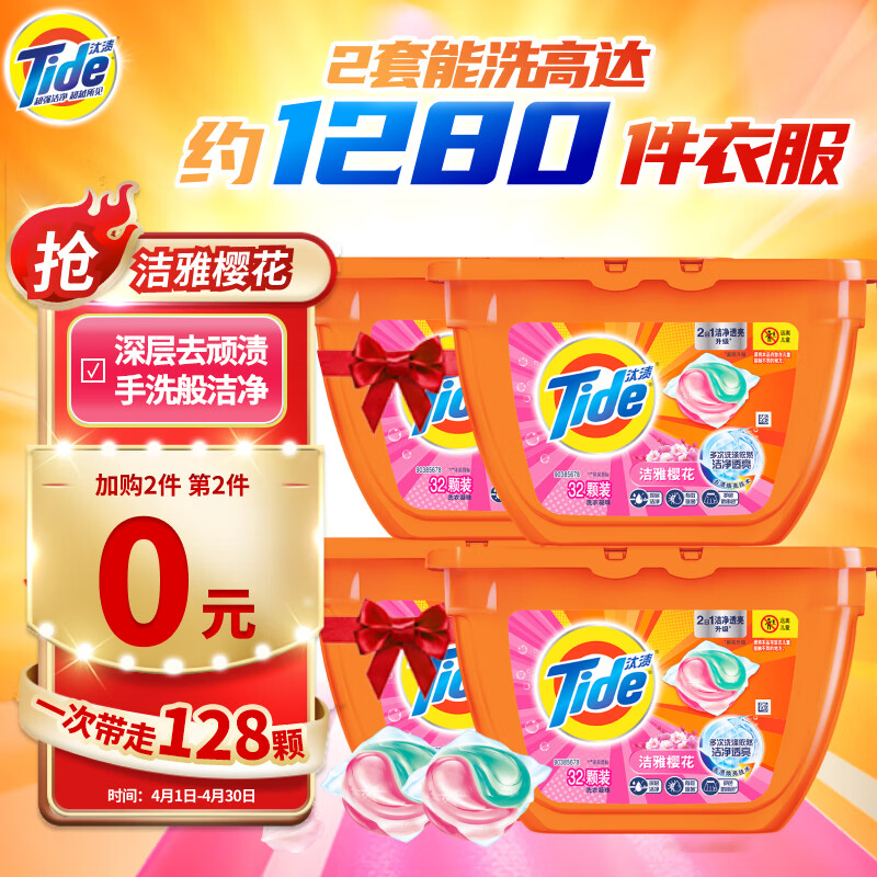 百亿补贴,汰渍 洗衣液凝珠32颗*2盒,44.9亓自营包邮
