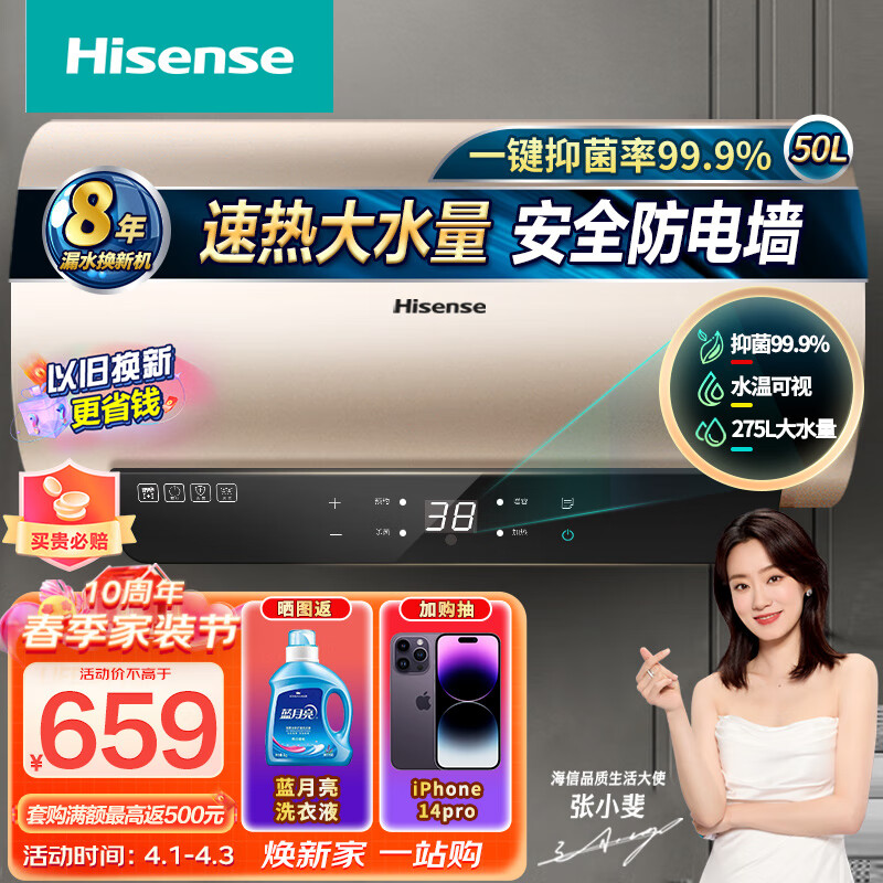 Plus 9.9开居特权卡领499-40京贴券,海信(Hisense)60升速热5.5倍家用节能电热水器