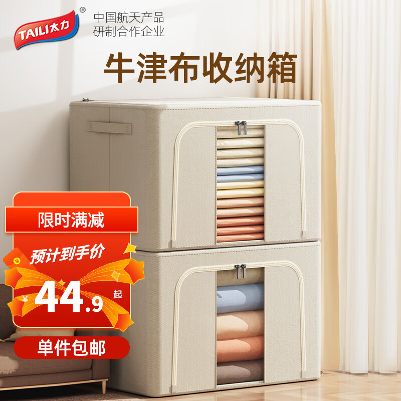 太力 折叠环保牛津百纳布收纳箱 66L,33.9亓包邮
