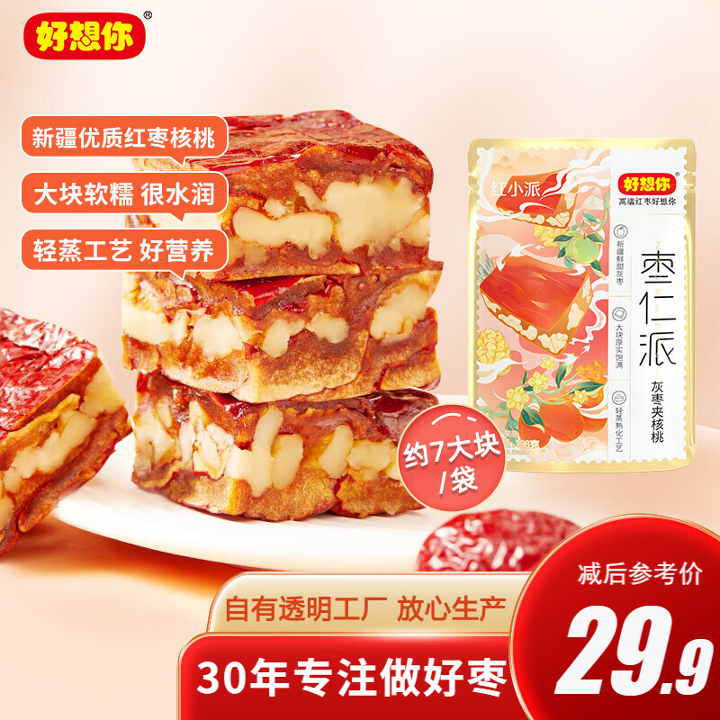 好想你 新疆特产下午茶零食枣仁派198g*2袋
