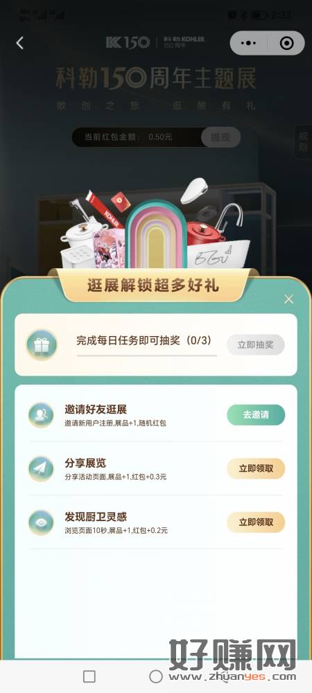 长期活动每天0.5满一元提现,此连接好像自带邀请,人头没用才