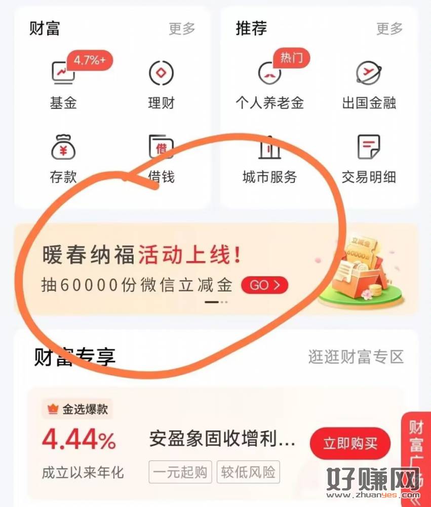 中信银行APP首页-暖春纳福 抽60000份微信立减金,进去后随便点一下即可获得1元微信立减金