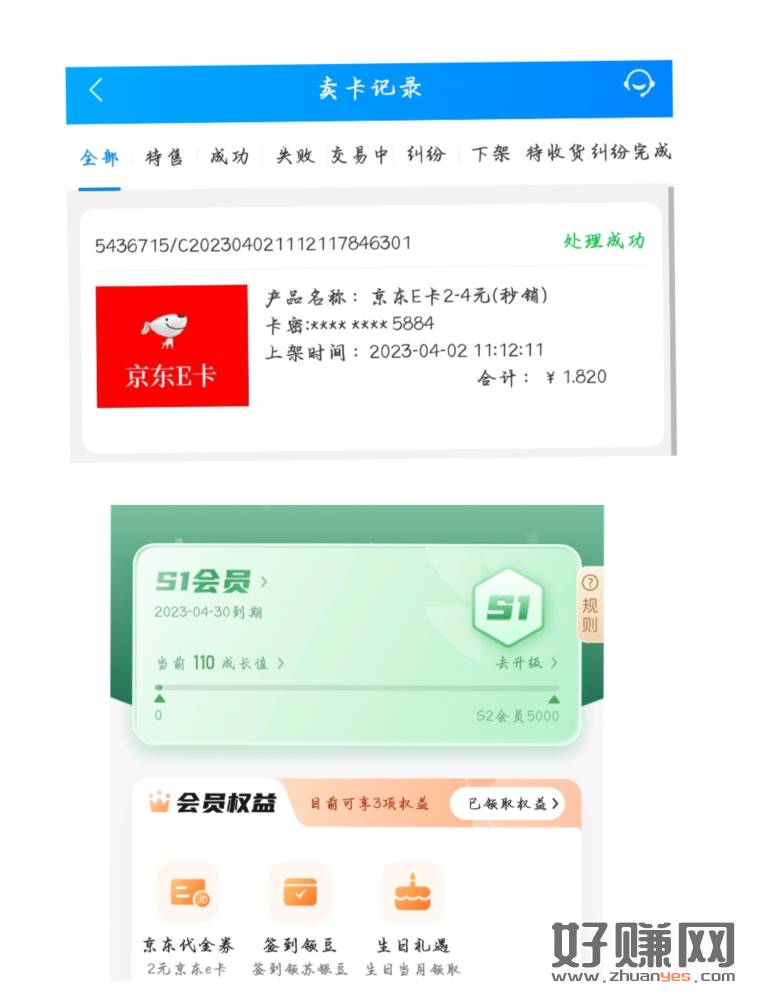 江苏银行APP,每月会员2e卡领取,微信公众号闲卡宝平台秒销,利润1.82