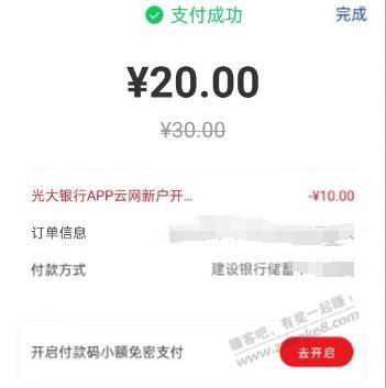 打开扫一扫付款码被扫30-10,可以用吧码扫,必须首次才行,任意卡都可以付款,付款时不显示优惠,付完后显示