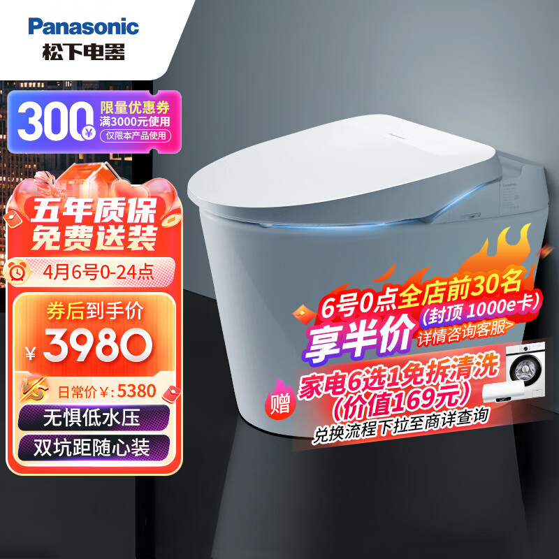 松下(Panasonic)自由坑距低水压,即热分体式智能坐便器2677