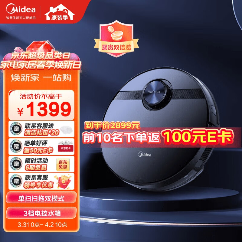 美的(Midea)M7耀石黑智能扫地机器人,激光导航 扫拖一体4000Pa大吸力