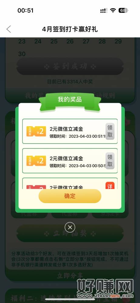 徽商银行签到3天抽立减金,抽完第一次假分3次再抽一次,应该保