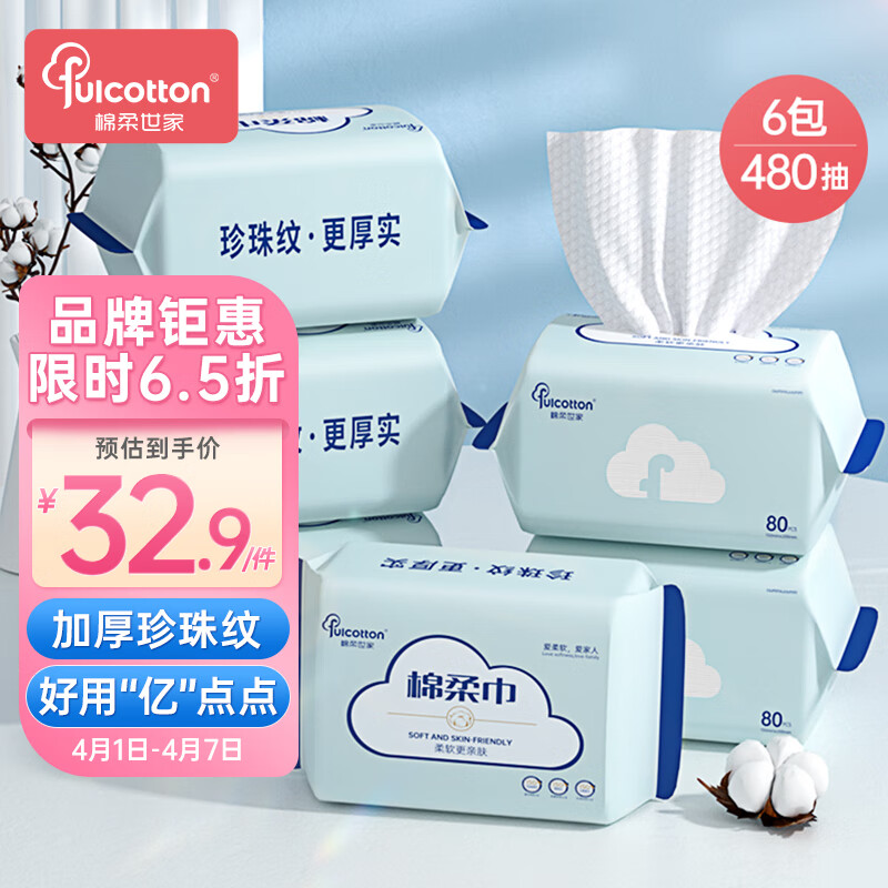 棉柔世家 一次性棉柔巾珍珠纹加厚 80抽*6包/提