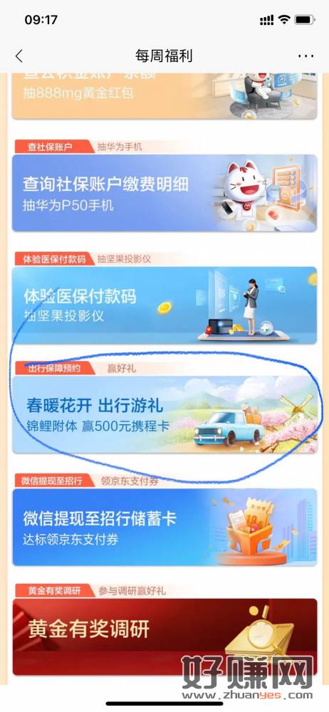 招商银行首页横幅 四月礼遇进去春暖花开 出行有礼 订阅保障抽奖 下拉预约有礼