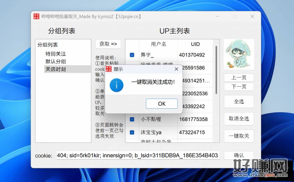由于b站没有批量取关的功能,一个一个点取关太浪费时间,所以自己做了一个小工具