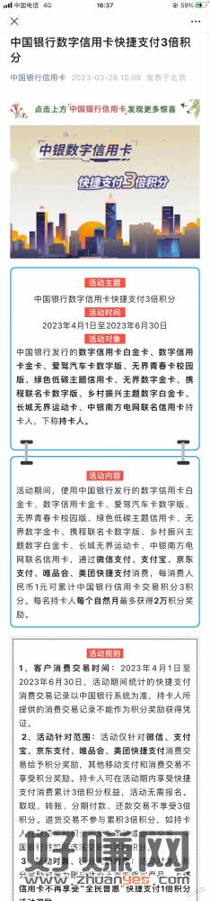 中行数字xing/用卡 刷 3倍积分 4月份延期到6月30日