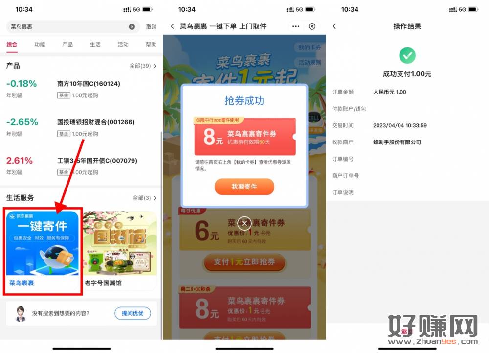 【中行1元买菜鸟裹裹6~8元寄件券】中国银行APP搜索“菜鸟裹裹”->平时1元买6元寄件券->每周二1元买8元寄件券->券有效期2个月,刚好要寄快递的上吧!