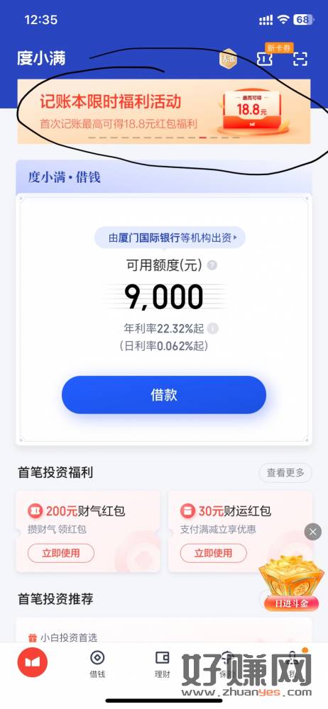 度小满金融记账亲测中 16 元