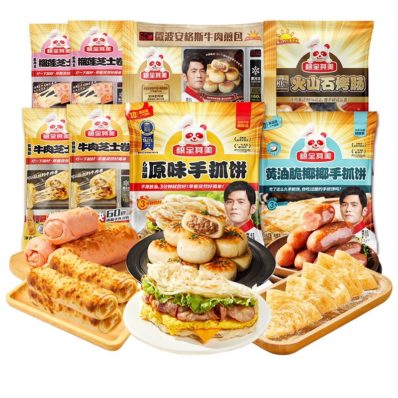 粮全其美 大礼包 8件套,榴莲卷2+牛肉卷2+手抓饼2+烤肠1+煎包1
