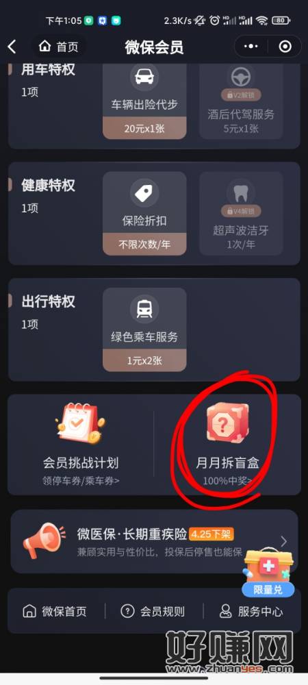 腾讯微保-我的-右上角会员-每月拆一次