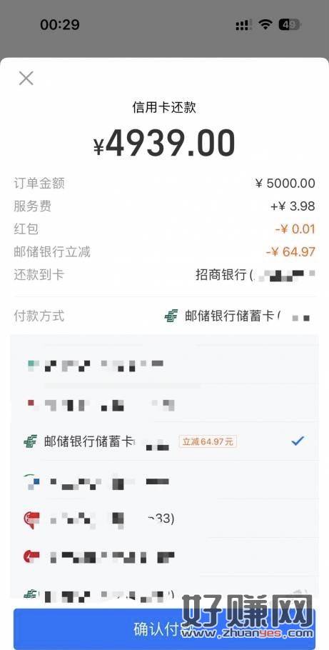 Zfb还款广西邮储随机减