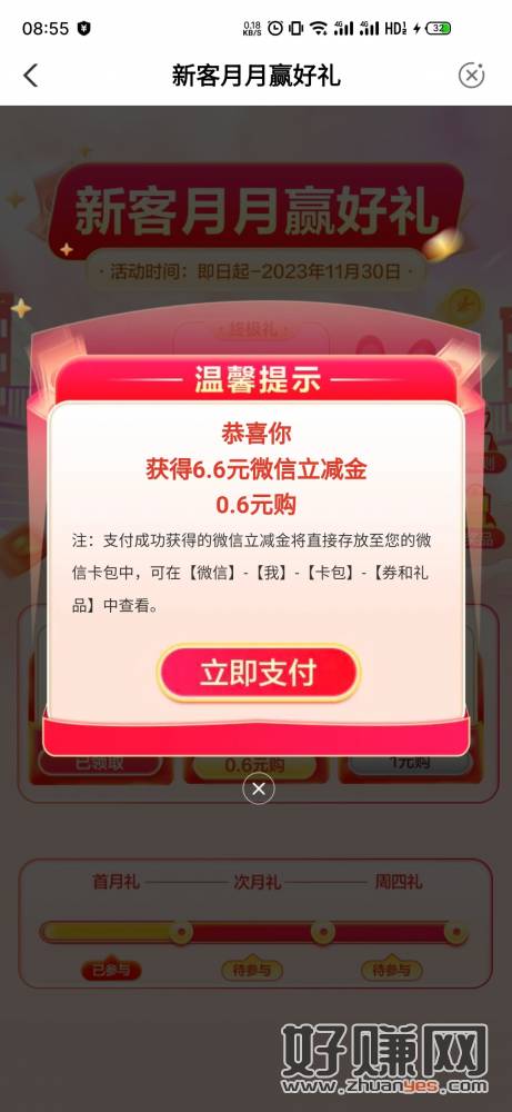 新客月月赢好礼,首月3.6元、次月6.6元、第三月10元