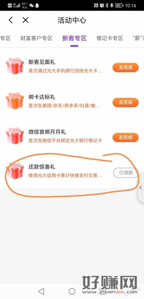光大APP 我的权益 新客专区