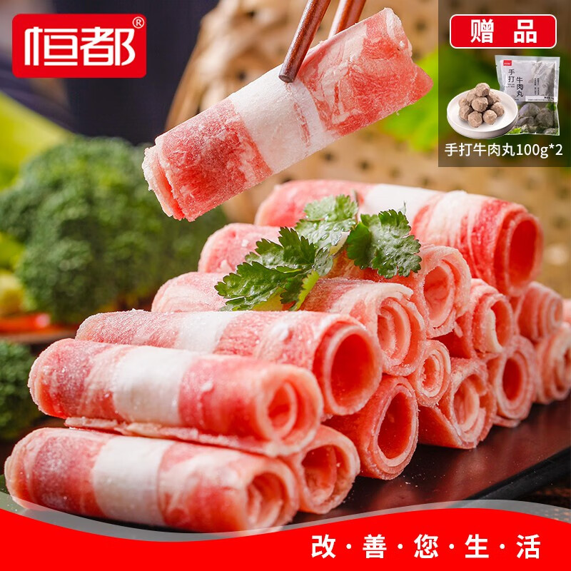 先抢129-20补贴券,恒都 国产冷冻谷饲尚选肥牛卷200g*8盒