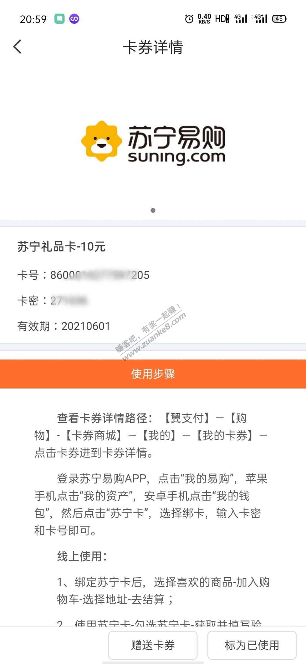 翼支付10苏宁卡