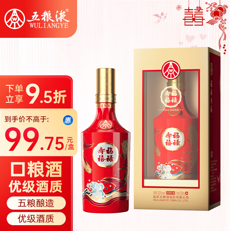 五粮液股份 福禄寿禧精制浓香型白酒 52度 500ml单瓶装