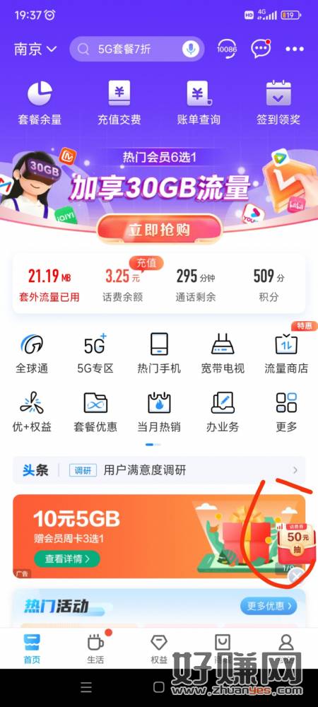 移动app快去首页-右下角图标,点进去,刮一刮,5元话费!