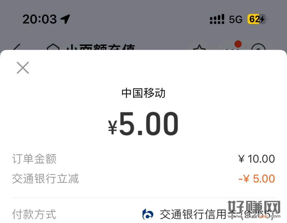 有交行xyk的zfb充话费10-5