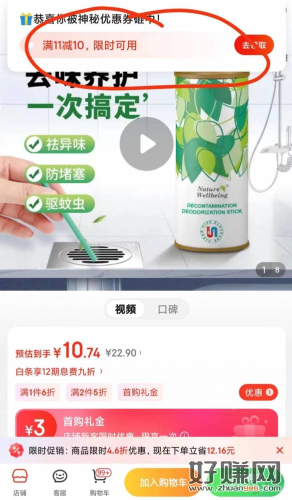 ?进入商品弹框11-10券,叠加首购-3,叠加免邮,还有商品下京喜-1,付0