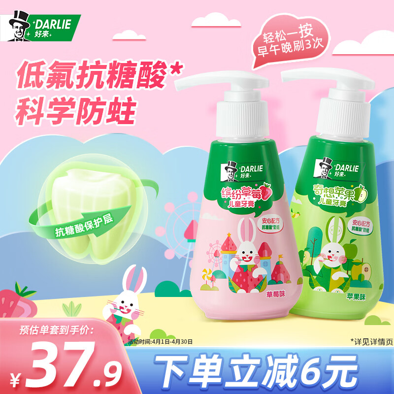 DARLIE好来 按压式儿童牙膏 2支共240g,入会,拍下25.7亓+u