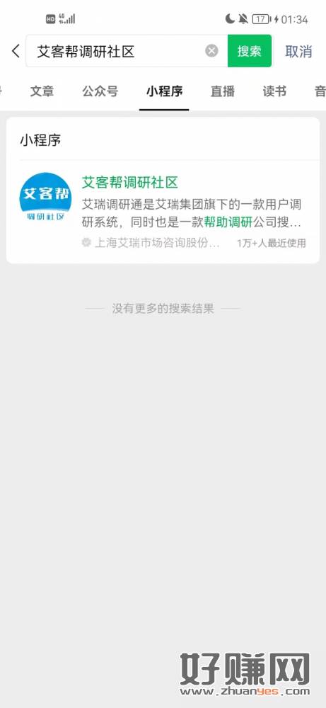微信搜索艾客帮调研社区小程序,做任务领积分提现1元到支付宝。