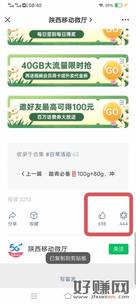 陕西移动手机号 图中所示点赞和在看截图发给公众号就行
