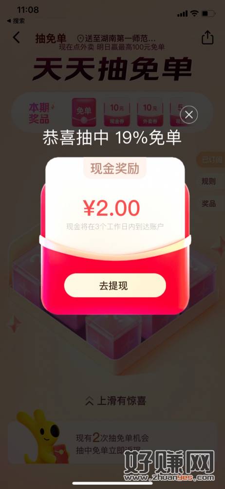 每日拆盲盒,天天赢免单! 今日点外卖即可获得拆盲盒次数,赢取