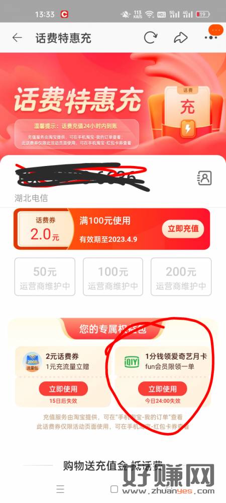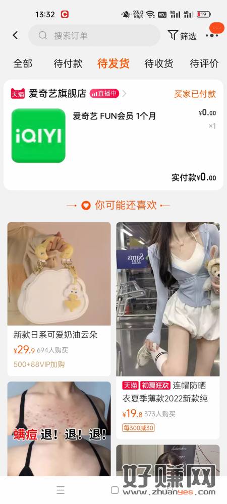 飞猪会员旗舰店可以0.1薅天猫2超卡购买了之后有个话费卷点进去,去看看下面有个领爱奇艺月卡立即付款0元领快冲!